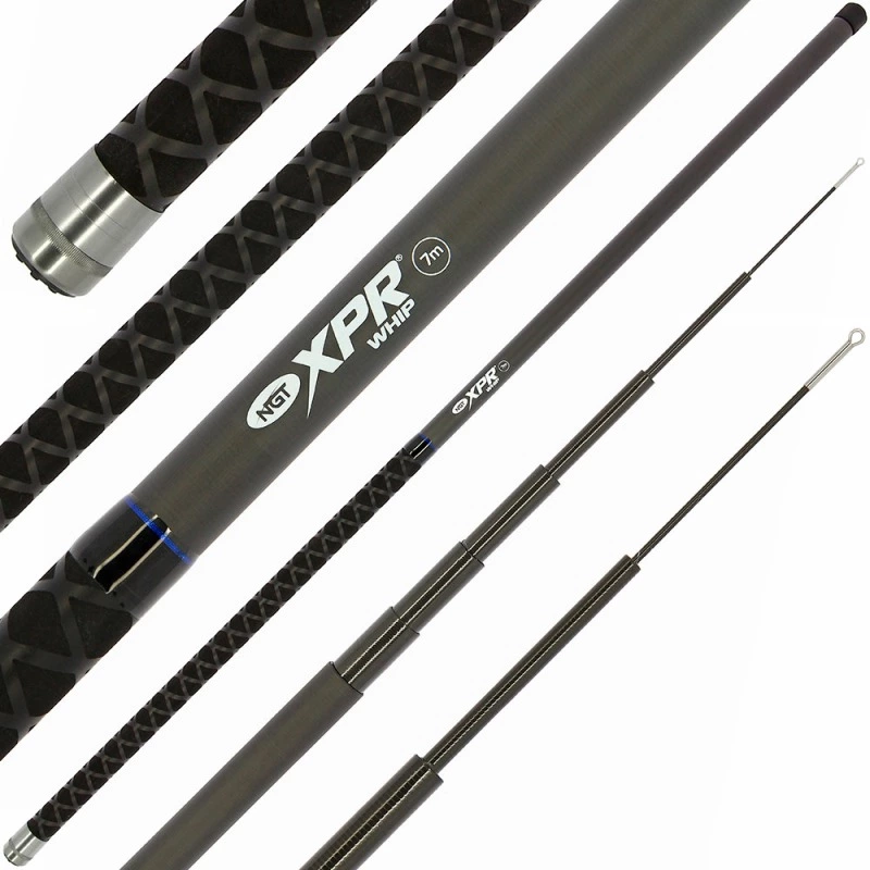 De NGT XPR Whip is een ultralichte, ultradunne telescopische hengel van 7 meter. De hengel is gemaakt van hoogwaardig carbon en de greep is voorzien van een anti-slip grip met kruisarcering. Met deze hengel kun je gemakkelijk en snel vissen, ideaal voor voorn, brasem, kleine karpers en meer.
