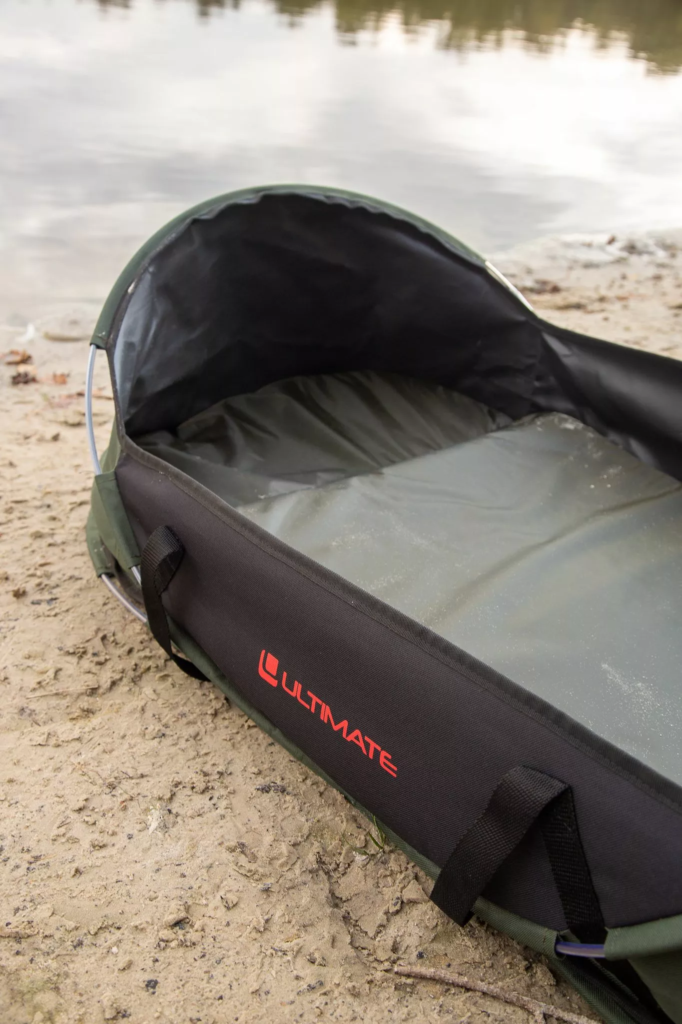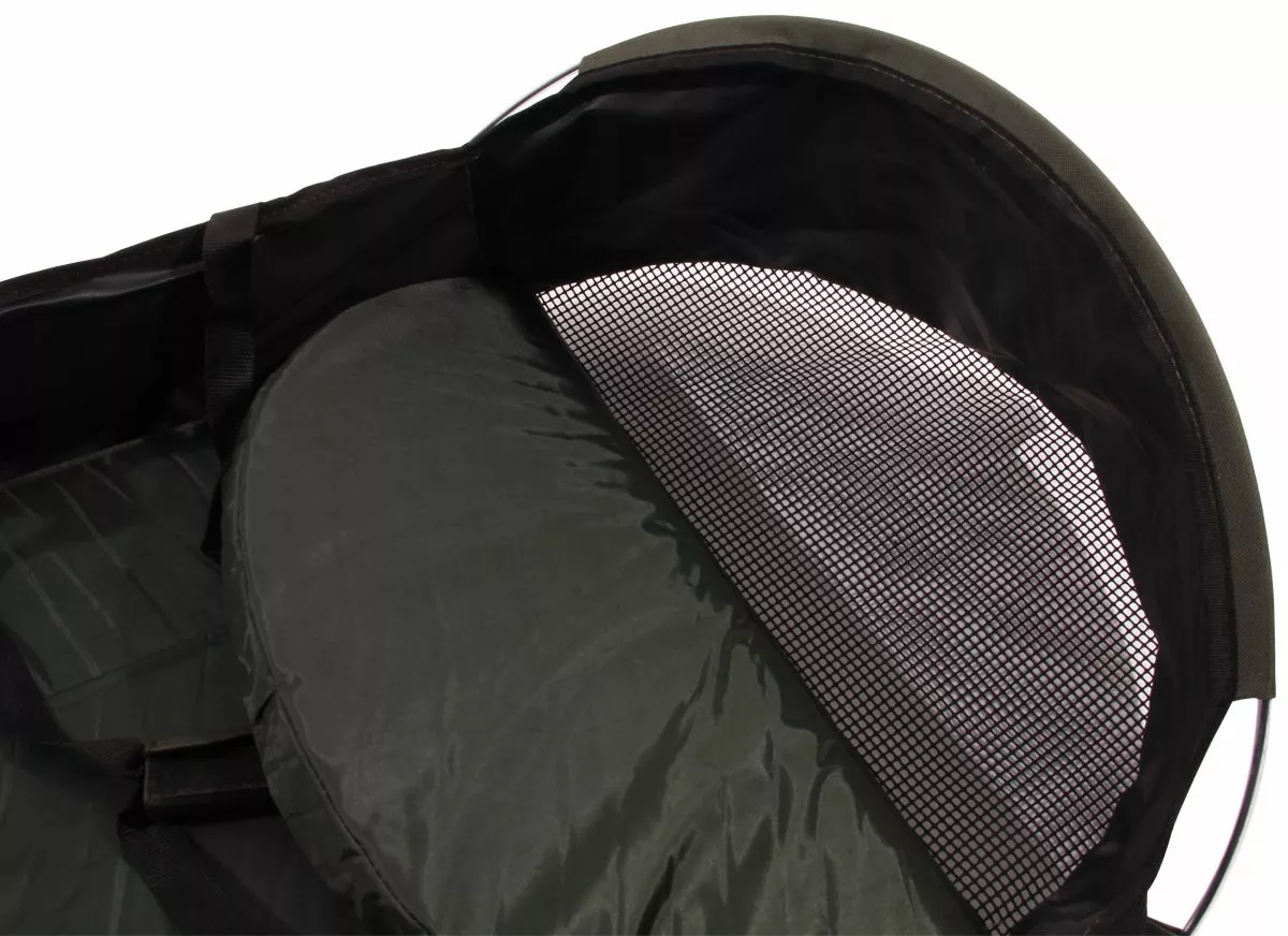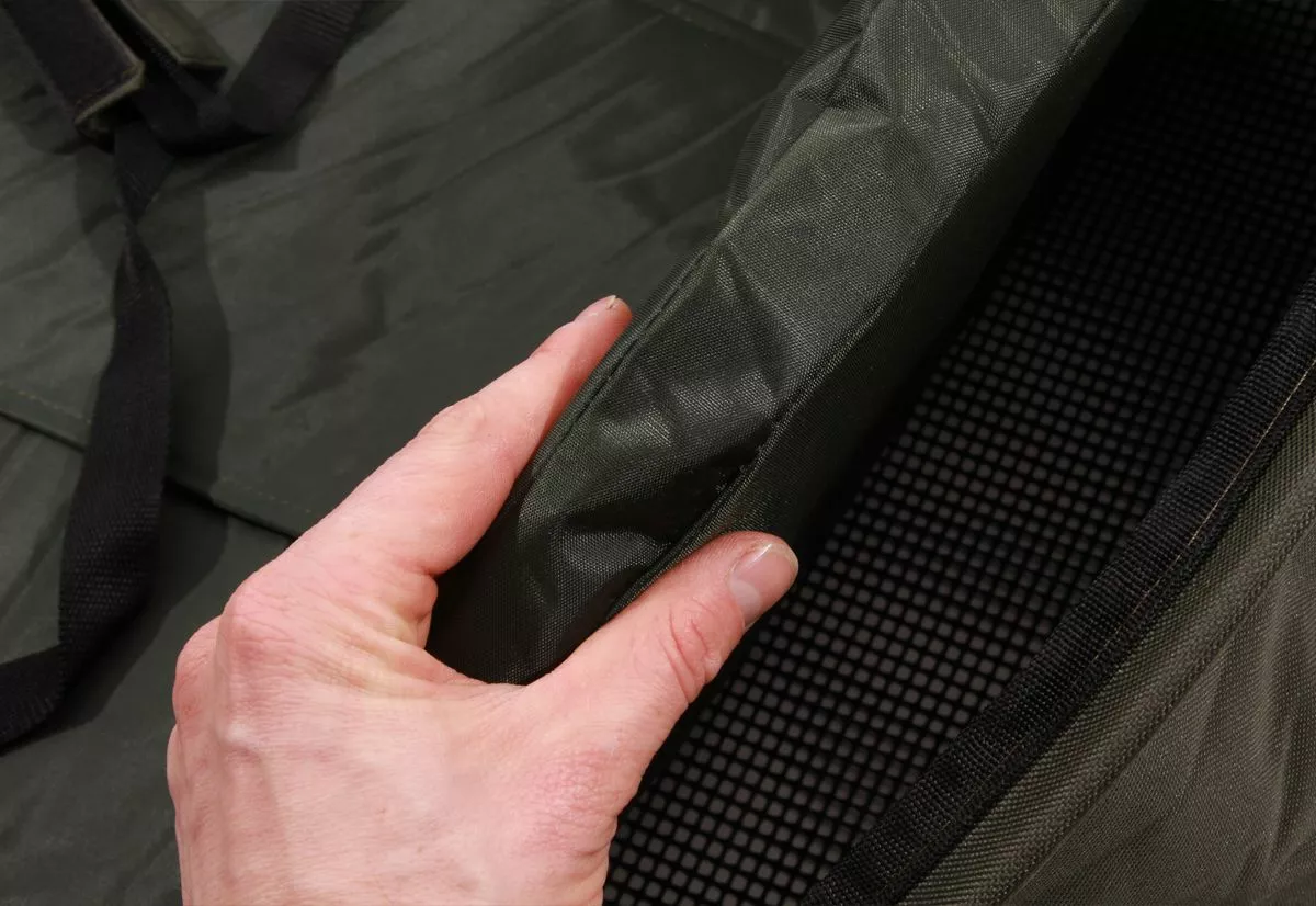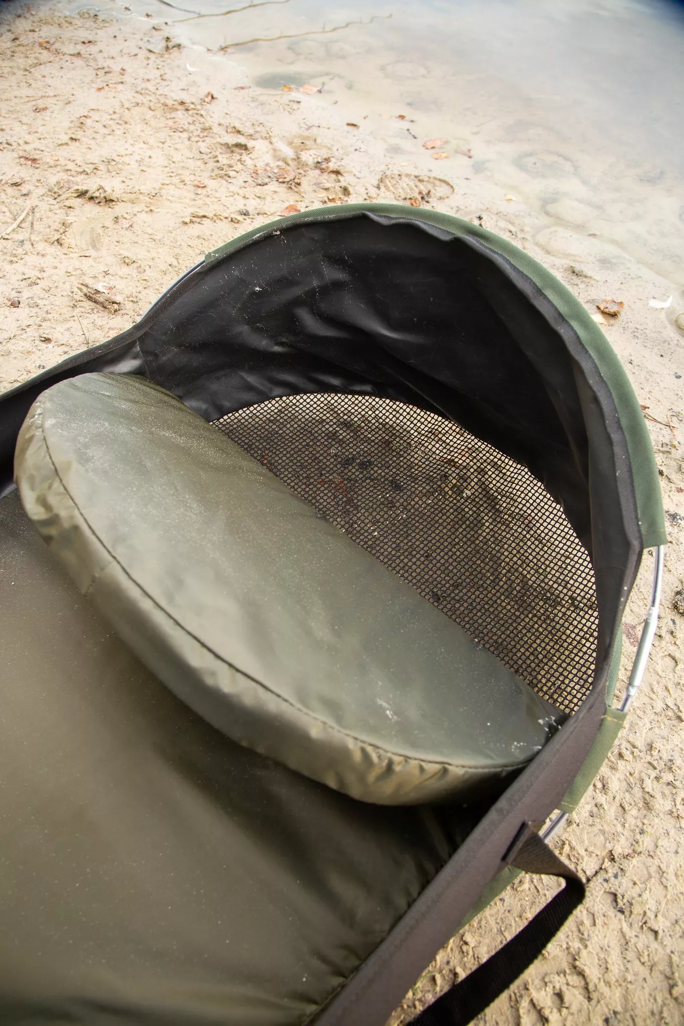 De onthaakmat is vervaardigd uit glad, visvriendelijk materiaal en door de hoog opstaande randen zal de vis niet van de mat spartelen. Het frame is makkelijk en snel uit te klappen. De cradle vouwt vrij compact op, is zeer royaal opgevuld en met de zeer ruime afmetingen van 108 × 54 × 34cm is deze geschikt voor zelfs de grootste karper. Een hoogwaardige onthaakmat met een uitstekende prijs-kwaliteitverhouding!